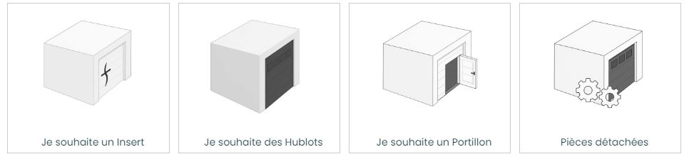 Options : hublots, inserts décoratifs, bâton de maréchal, LED, chatière, grille de ventilation, entrée de courrier.